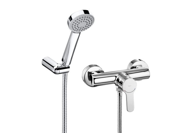 Grifo monomando para ducha L20 cromado. Incluye ducha de mano STELLA 80/1 , flexo de ducha de 1500mm y soporte articulado