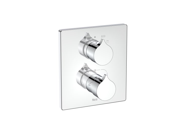 Mezclador termostático empotrable para ducha. A completar con Rocabox A525869403. No incluye enlaces de alimentación flexibles.