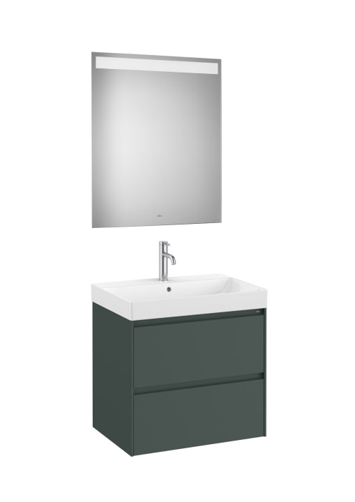 PACK, MUEBLE LAVABO Y ESPEJO, MODELO ONA ACABADO VERDE MATE Y MEDIDA 650X460