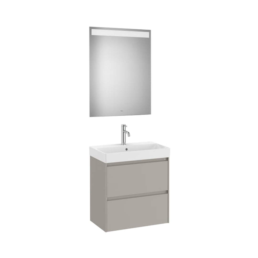 PACK COMPACTO. MUEBLE , LAVABO FONDO REDUCIDO Y ESPEJO MODELO ONA ACABADO GRIS MATE Y MEDIDA 600X360