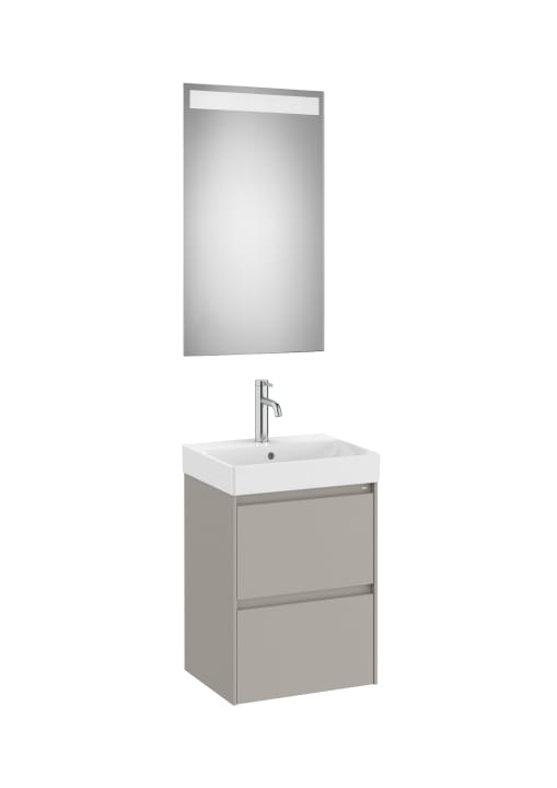 PACK COMPACTO, MUEBLE Y LAVABO FONDO REDUCIDO Y ESPEJO MODELO ONA ACABADO GRIS MATE Y MEDIDA 450X360