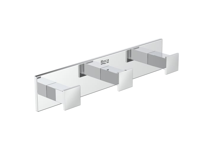 Percha triple HOTELS SQUARE acabado cromado. Medida 225x42x45 .Instalación mediante tornillería. Incluido sistema de fijación.