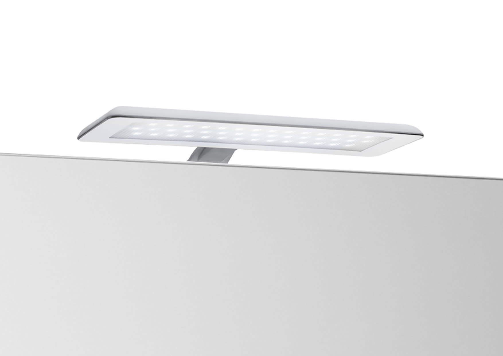 Aplique LED de 10 W MOOLIGHT con soporte de fijación de ROCA. Acabado cromado. Ideal para la parte superior de una espejo