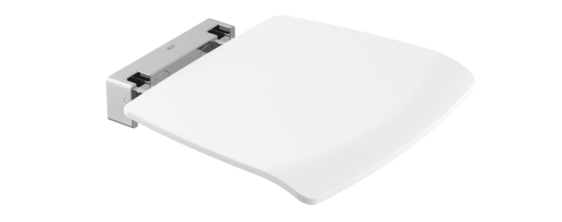 Asiento de ducha abatible modelo ACCESS DESIGN para movilidad reducida acabado blanco mate. Peso máximo 150 kg. Medida 375x380x65 mm. Fijaciones incluidas.