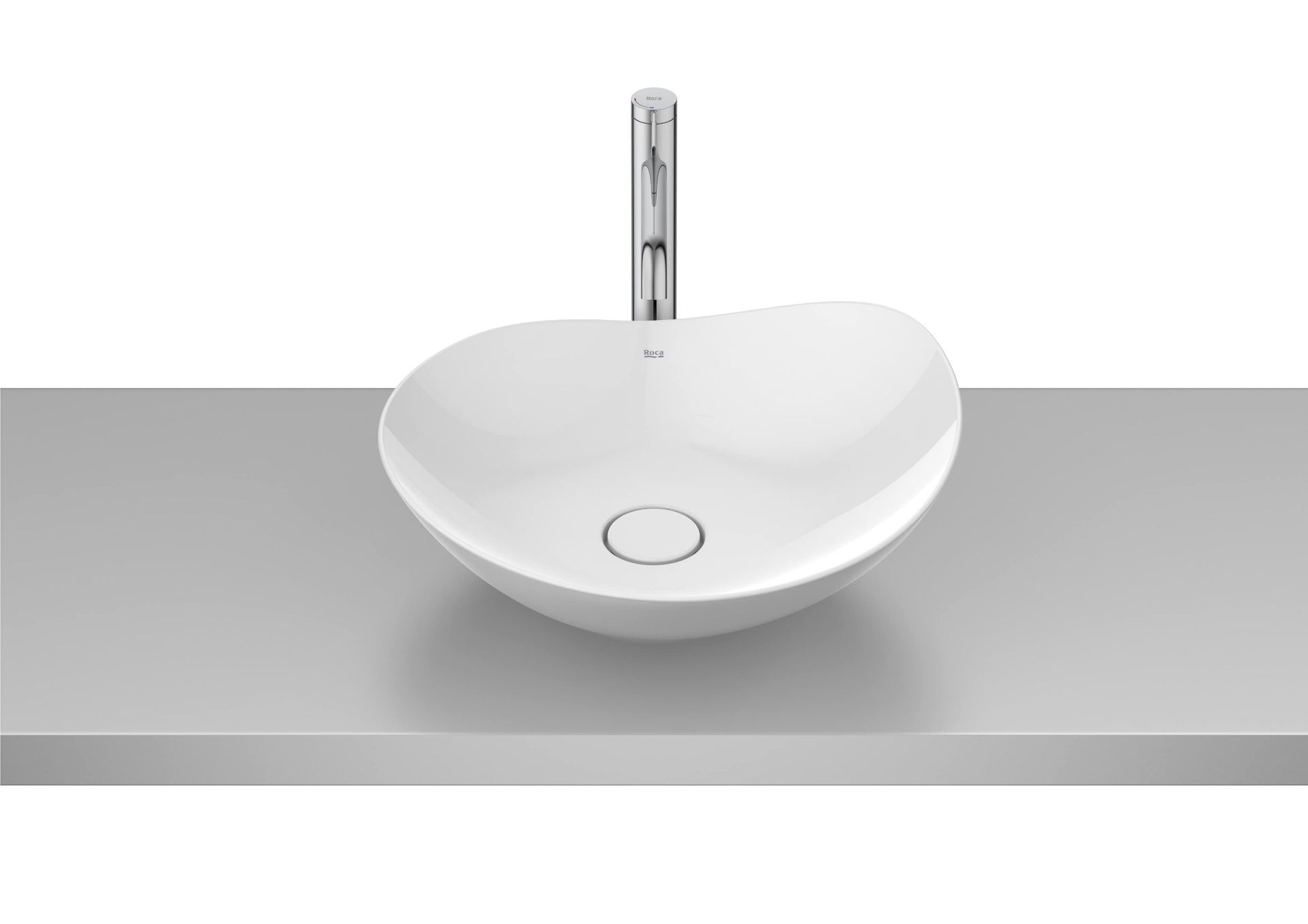 Lavabo sobreencimera modelo OHTAKE de fineceramic®, acabado blanco. Medida 470x405x183 mm. No incluye grifería ni desagüe.