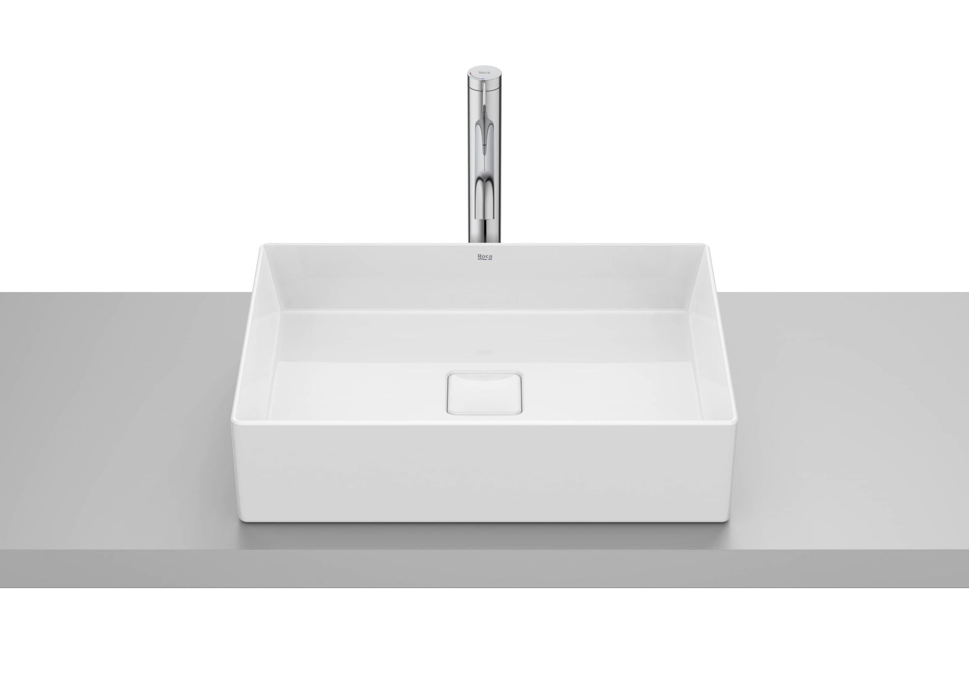 Lavabo de fineceramic® sobre encimera modelo TERRA, acabado blanco. Medida 510x360 mm. No incluye grifería ni desagüe.