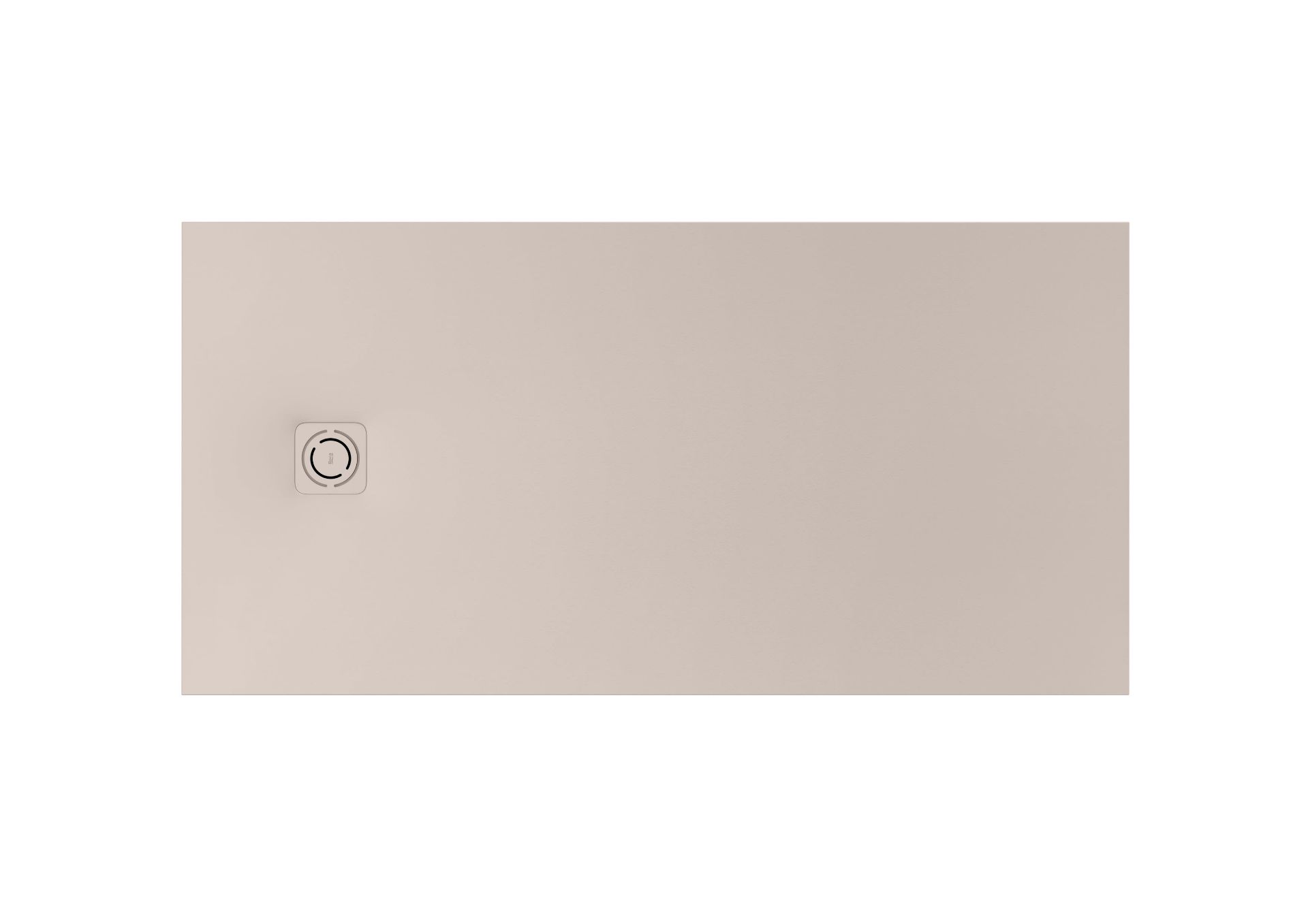 Plato de ducha TERRAN 1600x700 mm rectangular extraplano STONEX con textura grava andeslizante. Incluye válvula de desagüe y rejilla TWIST en el mismo acabado de color.