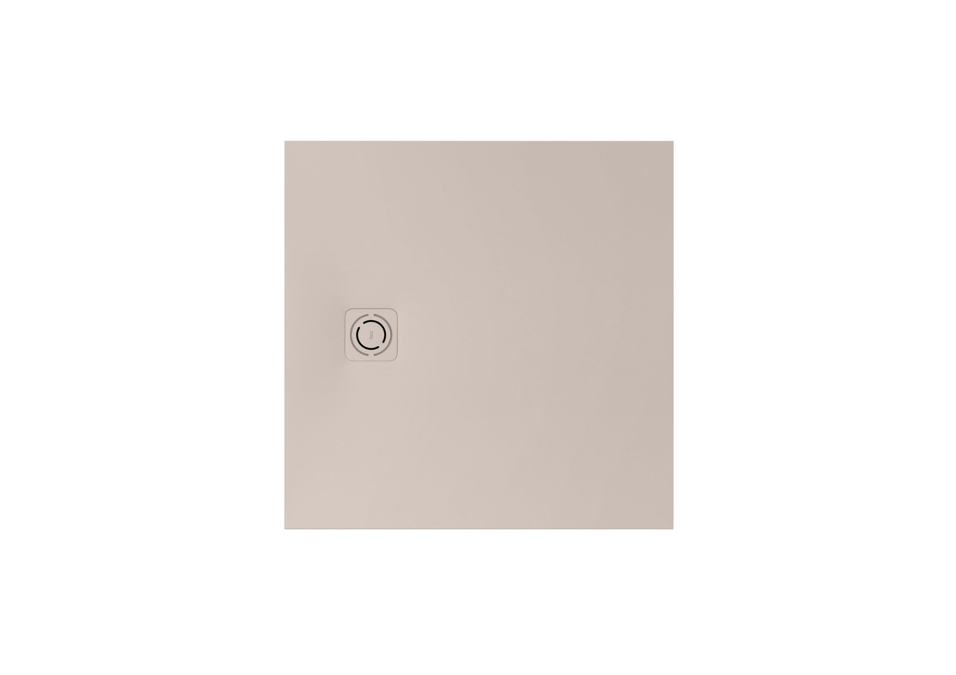 Plato de ducha TERRAN 800x800 mm cuadrado extraplano STONEX con textura grava andeslizante. Incluye válvula de desagüe y rejilla TWIST en el mismo acabado de color.