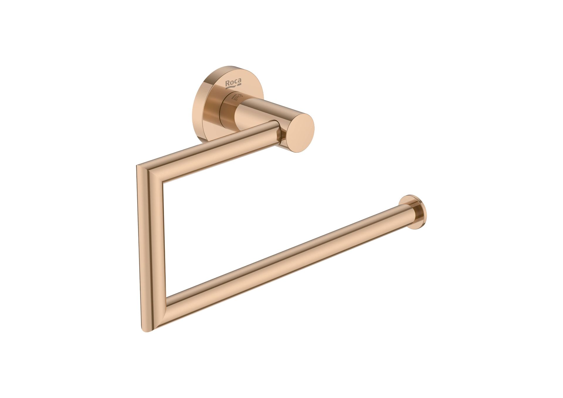 Toallero de anilla para lavabo HOTELS ROUND acabado oro rosado. Medida 221x71x130.Instalación dual mediante tornillería o adhesivo. Incluido sistema de fijación.